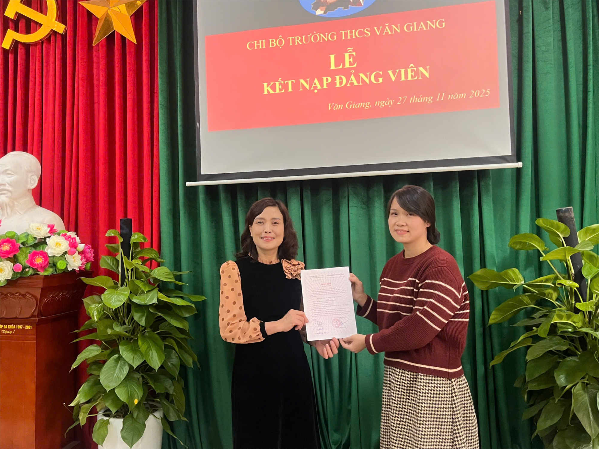 Chúc đồng chí luôn giữ vững lý tưởng, phát huy năng lực, đóng góp tích cực vào sự phát triển của Chi bộ Trường THCS Văn Giang.