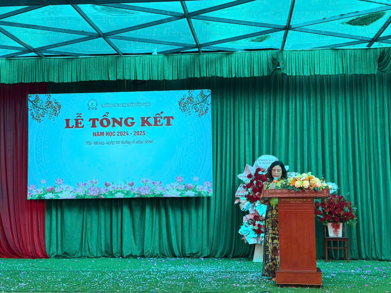 Sáng ngày 30 tháng 5 năm 2025, trong tiết trời đầu hè rực rỡ, thầy và trò trường THCS Thị trấn Văn Giang đã long trọng tổ chức lễ tổng kết năm học 2024–2025. Buổi lễ là dịp để toàn thể thầy và trò nhà trường cùng nhau nhìn lại những nỗ lực và thành quả đã đạt được trong suốt chín tháng học tập và rèn luyện vừa qua.