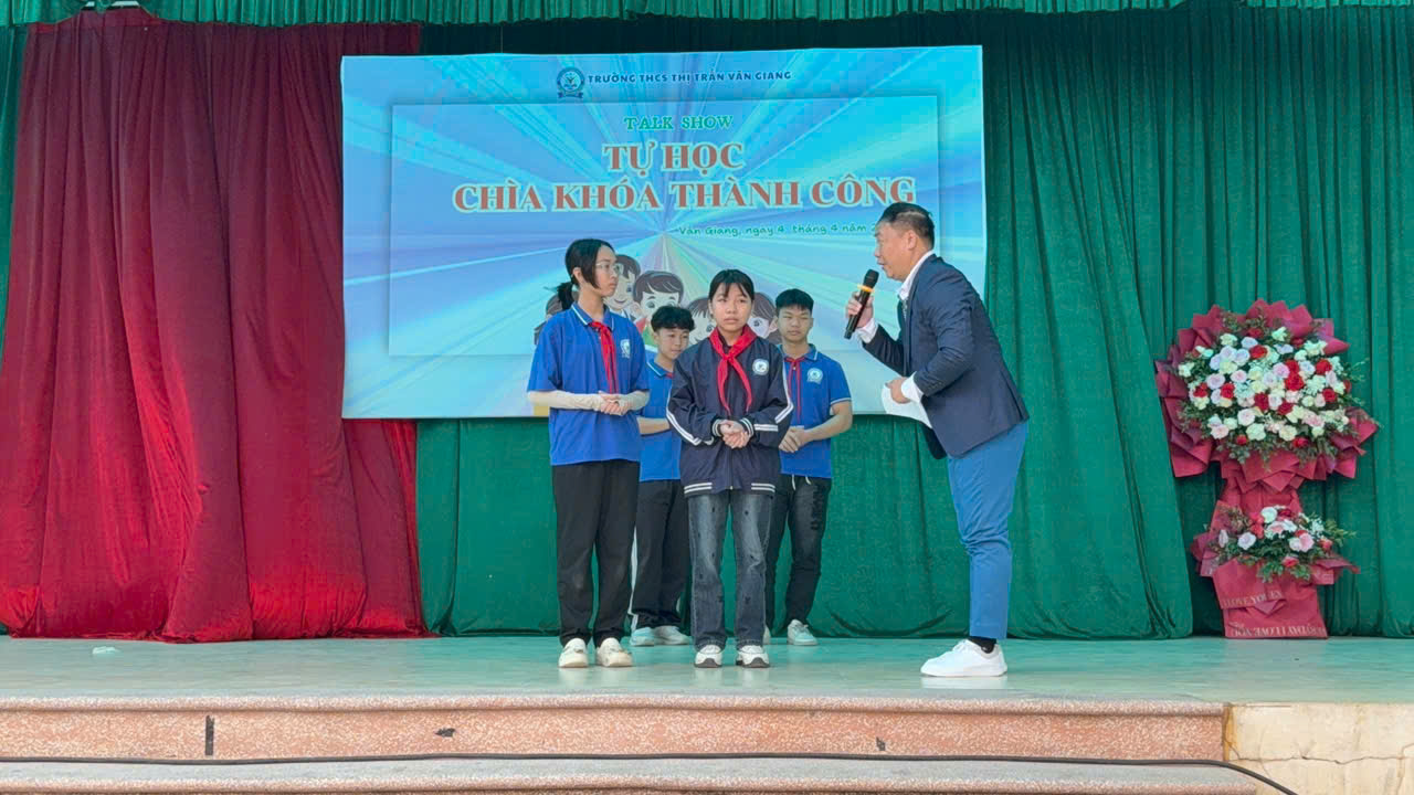 Không khí sôi động được đẩy lên cao trào với phần giao lưu trực tiếp, nơi các bạn học sinh mạnh dạn bước lên sân khấu, chia sẻ cảm nghĩ, câu chuyện, quan điểm về việc học của chính mình.